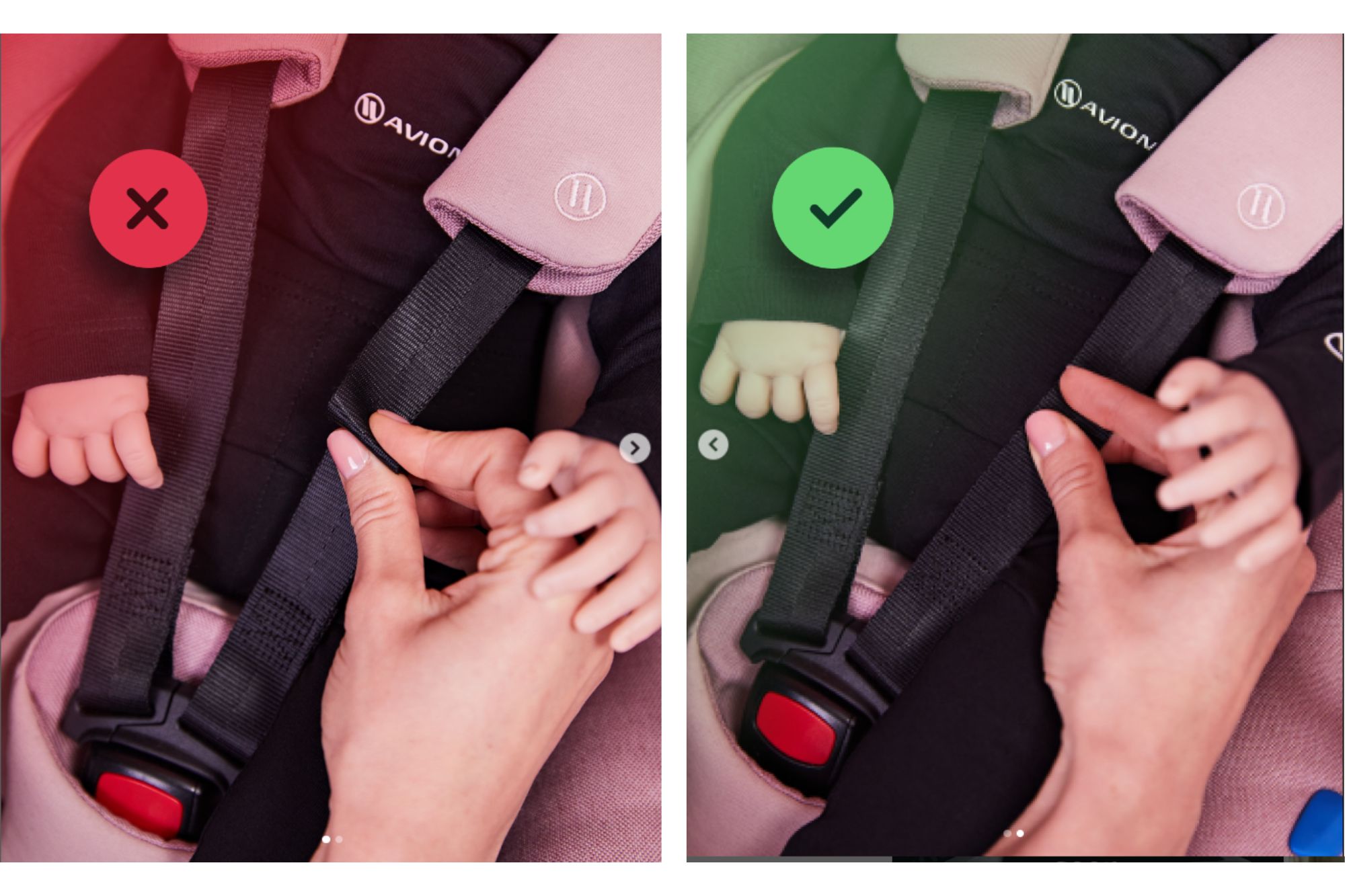 Tzv. „pitch test“ určuje, že pás nemusí být dotažený úplně s maximální silou, ale tak, aby nesklouzl z ramene. Nicméně pozor na to, aby v opačném případě nebyl dotažený příliš silně (děti mají tendenci před tlakem na ramenou uhýbat a může dojít k vyvlečení z připoutání). Vedení přes rameno je pak odlišné pro protisměr (pás má v horní části jít cca 1cm směrem za rameno dolů), v případě po směru naopak vede vodorovně, nebo velmi mírně nahoru nad rameno.
