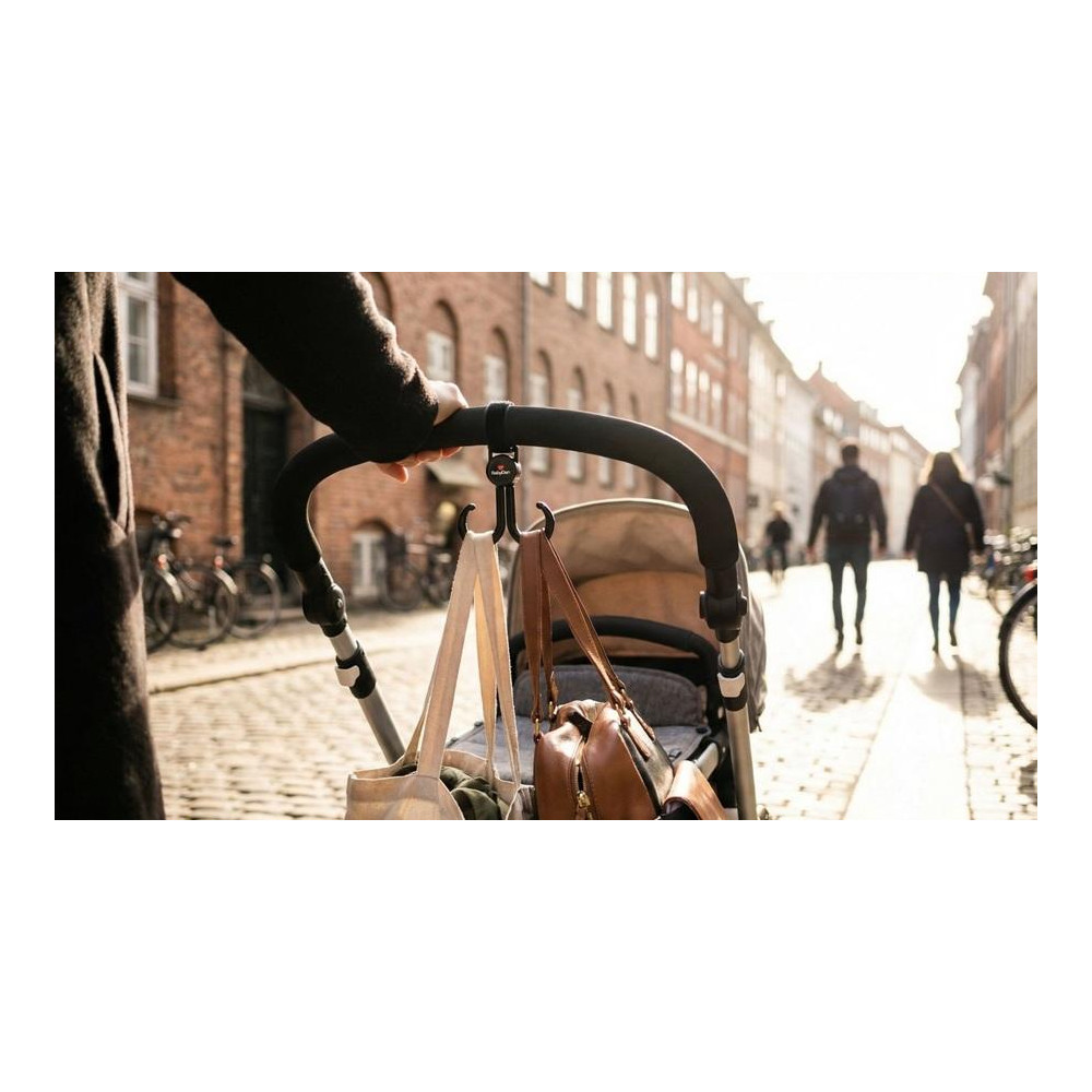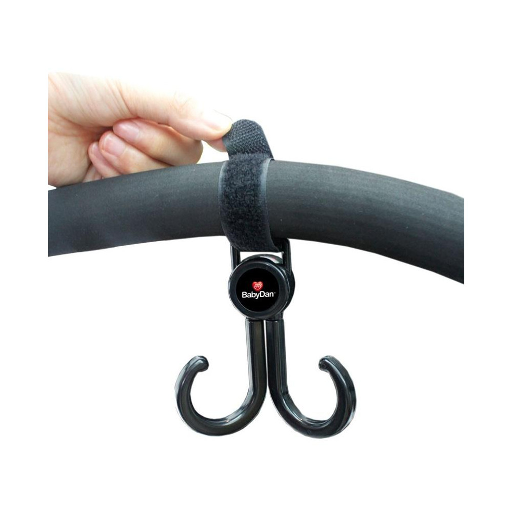 Nemá Vaše přebalovací taška řešení pro upevnění na kočárek? Chcete dál používat svoji oblíbenou kabelku i s kočárkem? Líbí se Vám kabelka, ale nemá vyřešeno upínání na kočárek? Pak vyzkoušejte univerzální dvojité háčky od Babydanu. Je to perfektní způsob jak upevnit tašku na kočárek. Snadno se upevňuje pomocí pásek ze suchých zipů. Je dvojitý, a jednotlivé části jsou otočné.